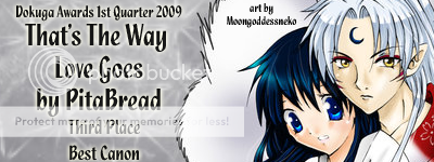 I am FAR from perfect. I may not be the most exciting writer (I need to work on that), but I really try to have correct spelling and grammar. Also (this is a big pet peeve of mine) - please - if you are going to correct me, make sure you are right. I try to be as canon as possible (unless I'm writing AU), which means I use Japanese words and spellings. I also stick to what I know of the MANGA, not the anime. Anime is NOT canon in InuYasha. Only the manga in canon, which means the movies aren't canon either. The movies technically never "happened", because Rumiko-sensei didn't make those. WAY too many times I have had girl ask me, "What about Ayame??" Ayame doesn't exist. It was a character that Sunrise made up to make the story more interesting. ALSO - occasionally I contain spoilers. I read the manga as it comes out, so if something is written in my story that seems off, it might be because you don't know about it yet, so don't blame me.